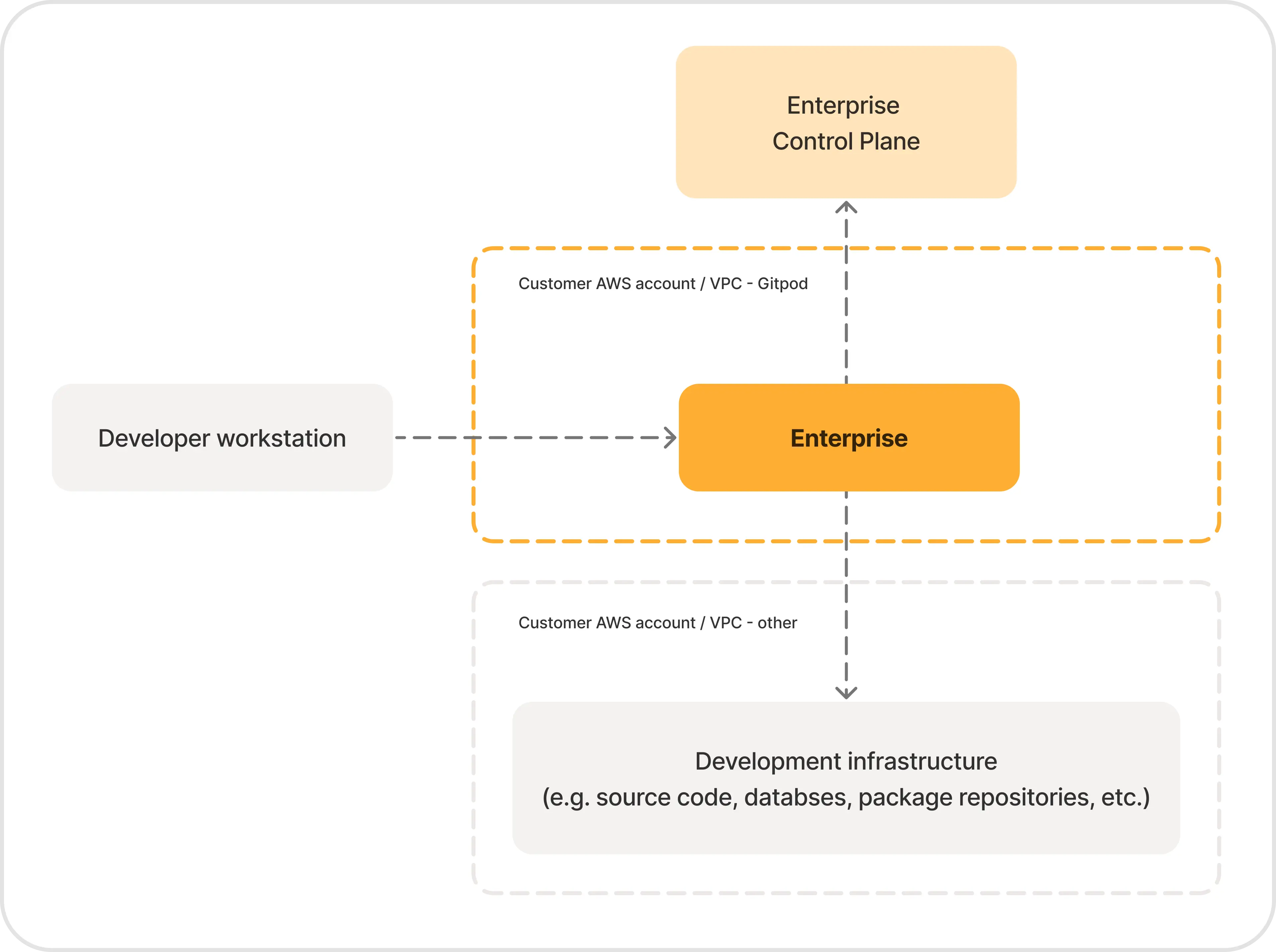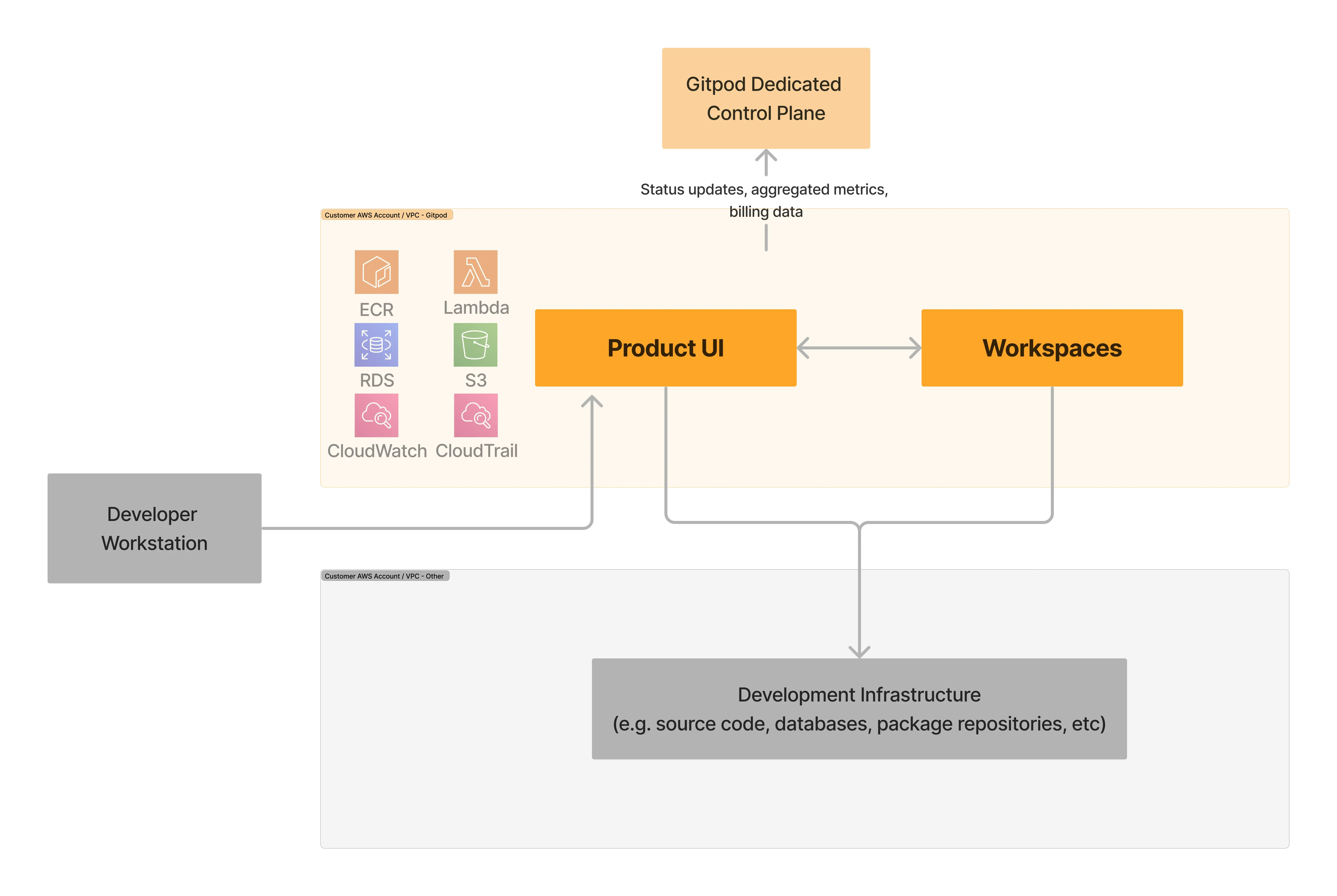 This architecture diagram is representative of the “All Private” networking mode only. Please refer to Networking and Data Flows for more details and information on how the other modes differ.