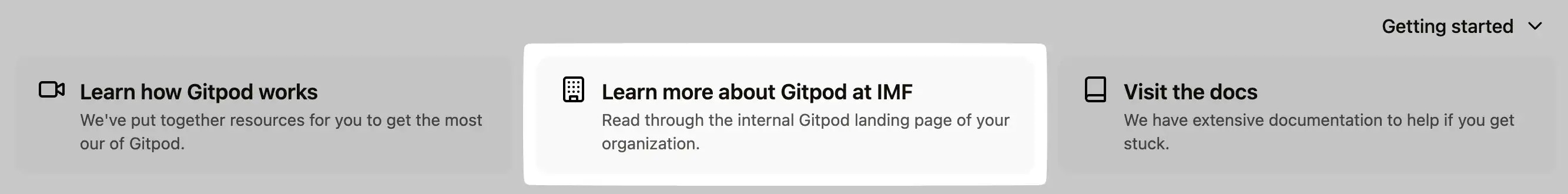 If your organization has an internal landing page about Gitpod or onboarding instructions, you can set the URL here. This URL will be displayed in theGetting started