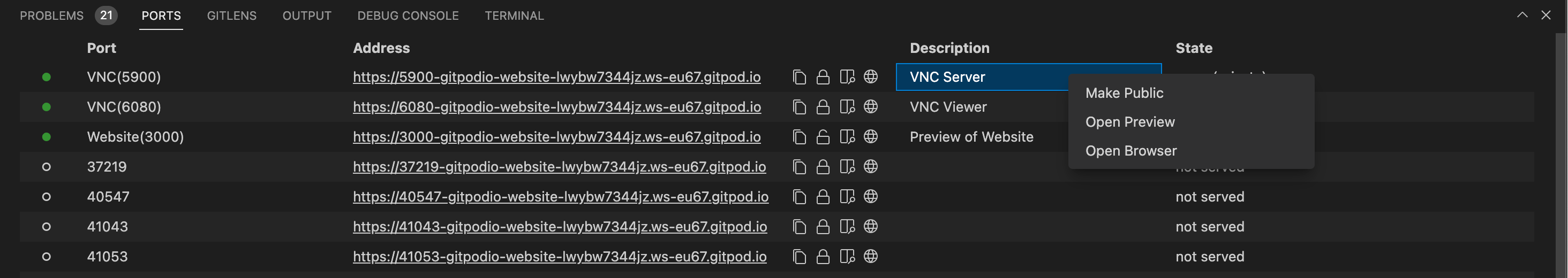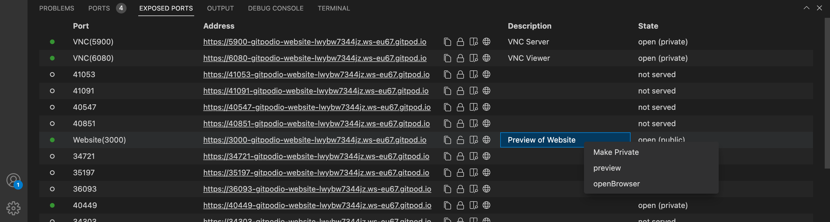 You can also print the port URL using the gp url command (e.g. gp url 3000