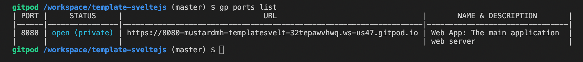 And if you prefer listing all open ports URLs at once, use gp ports list command.