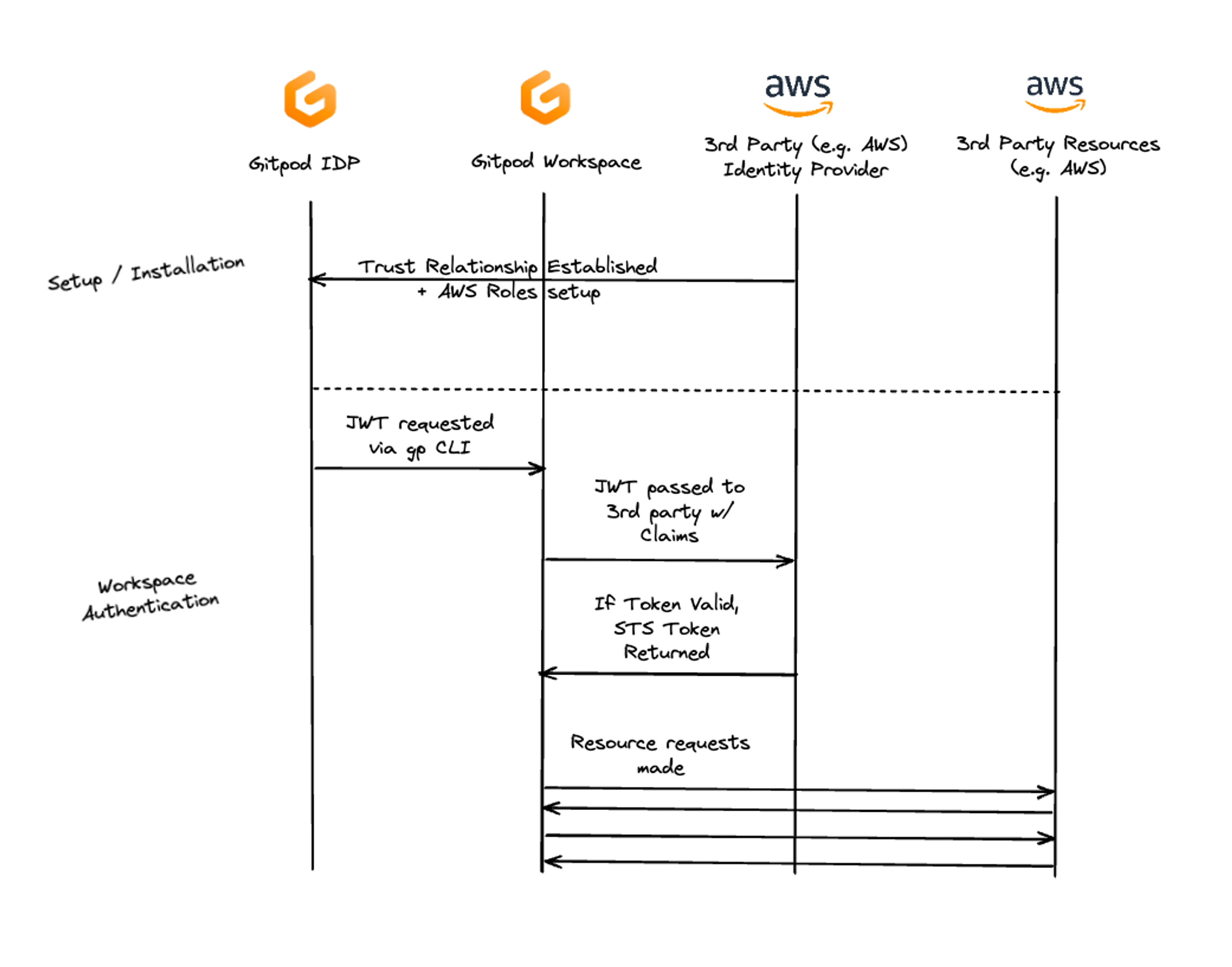 Sequence diagram of Authentication via OIDC using AWS with Gitpod