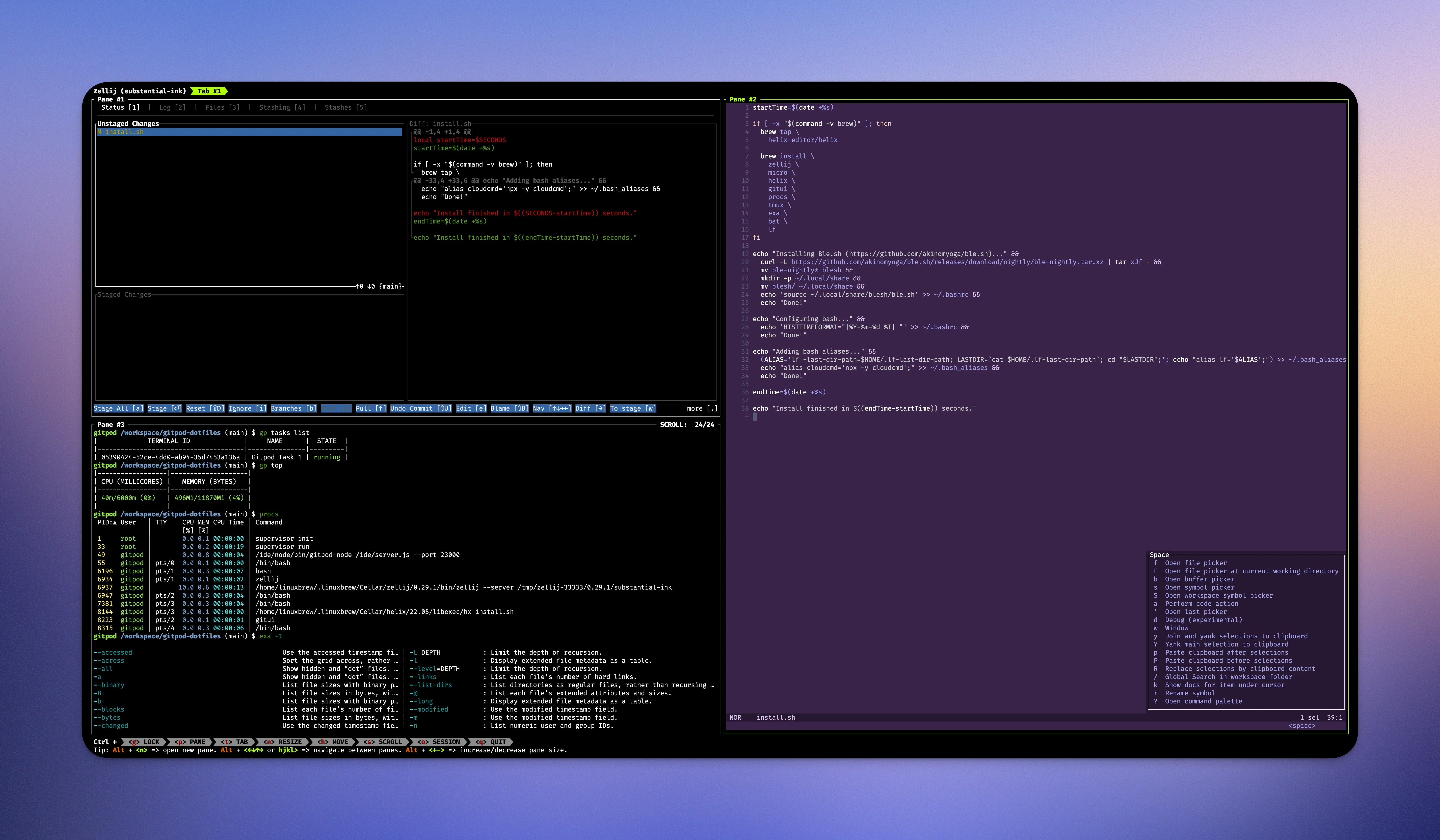 We have ready to use dotfiles samples that seamlessly integrate tmux or zellij on Gitpod: