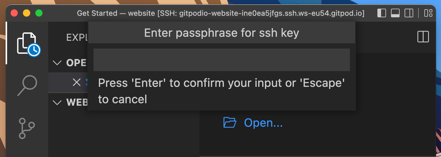 Passphrase prompt from VS Code requiring the SSH key passphrase