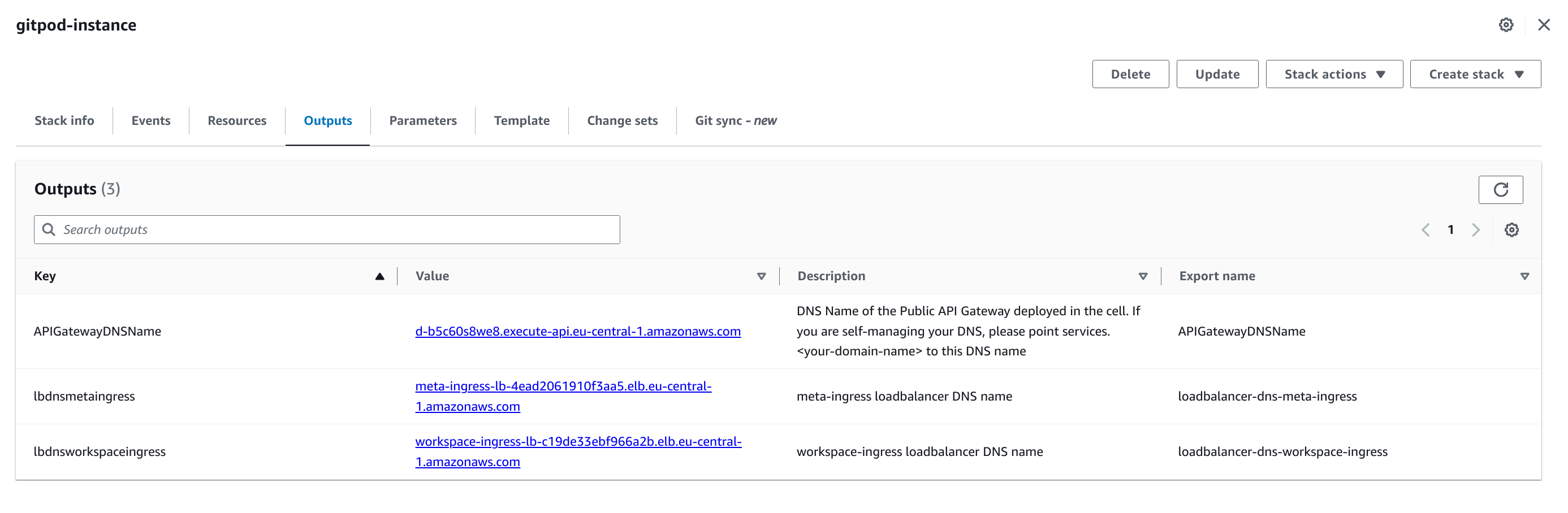 Option in your CF template parameters, then you will have a public API Gateway Created with a static DNS name, to which you will have to point a certain subdomain to. You will find the static domain in the output of your template as follows: