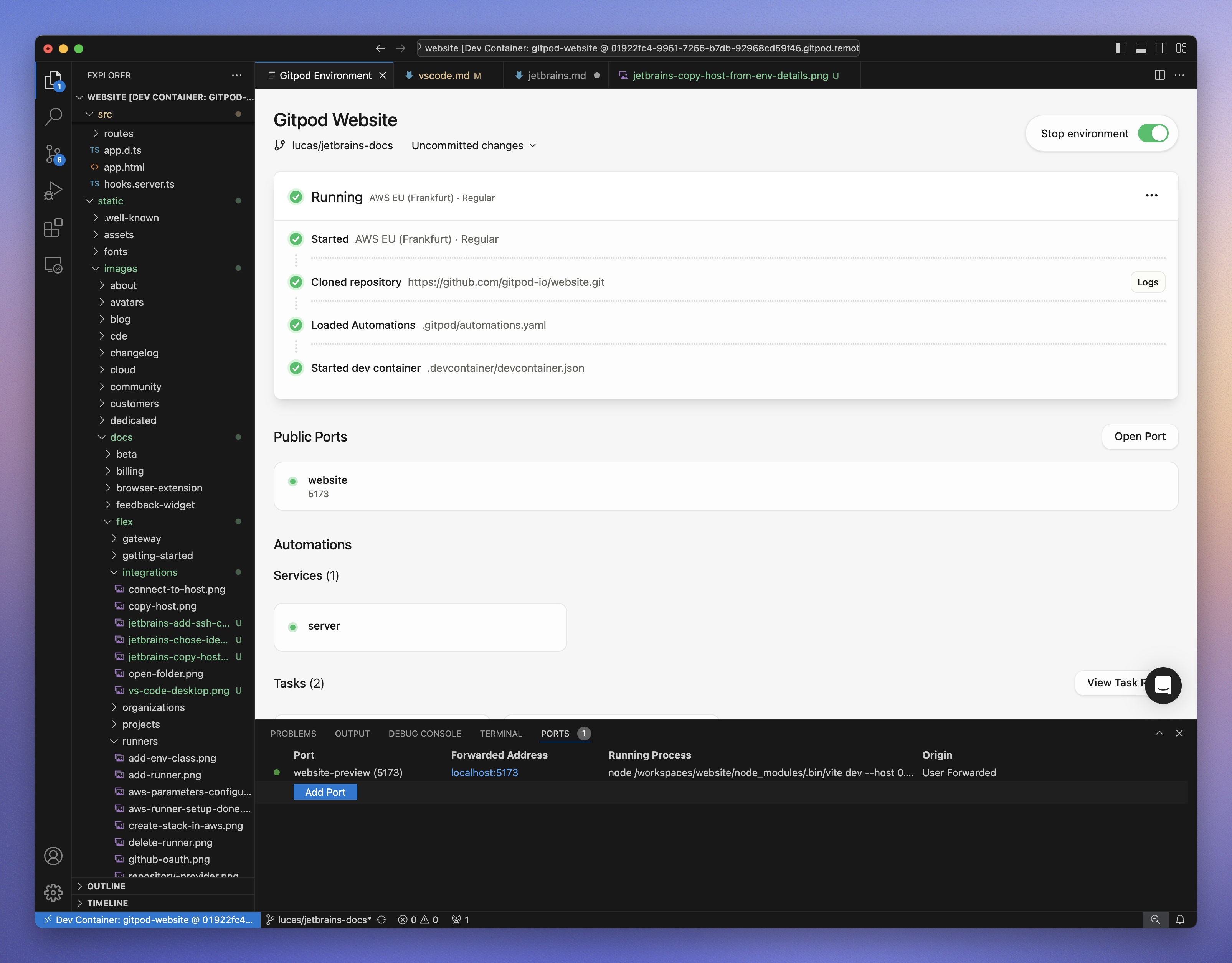 . For instance, forwarding ports from other services specified in a docker-compose.yml .- ✅ Workaround: Use