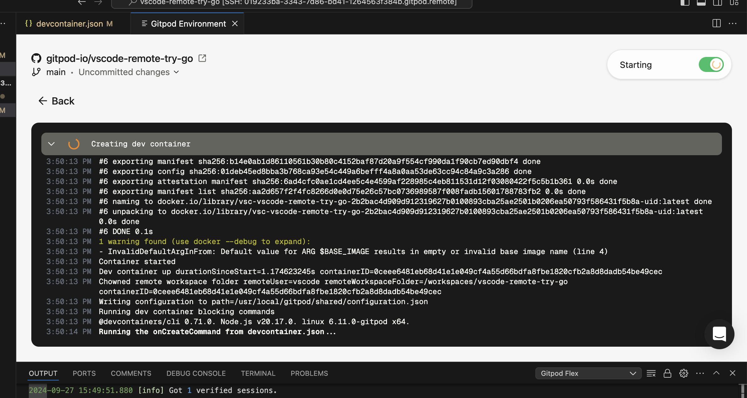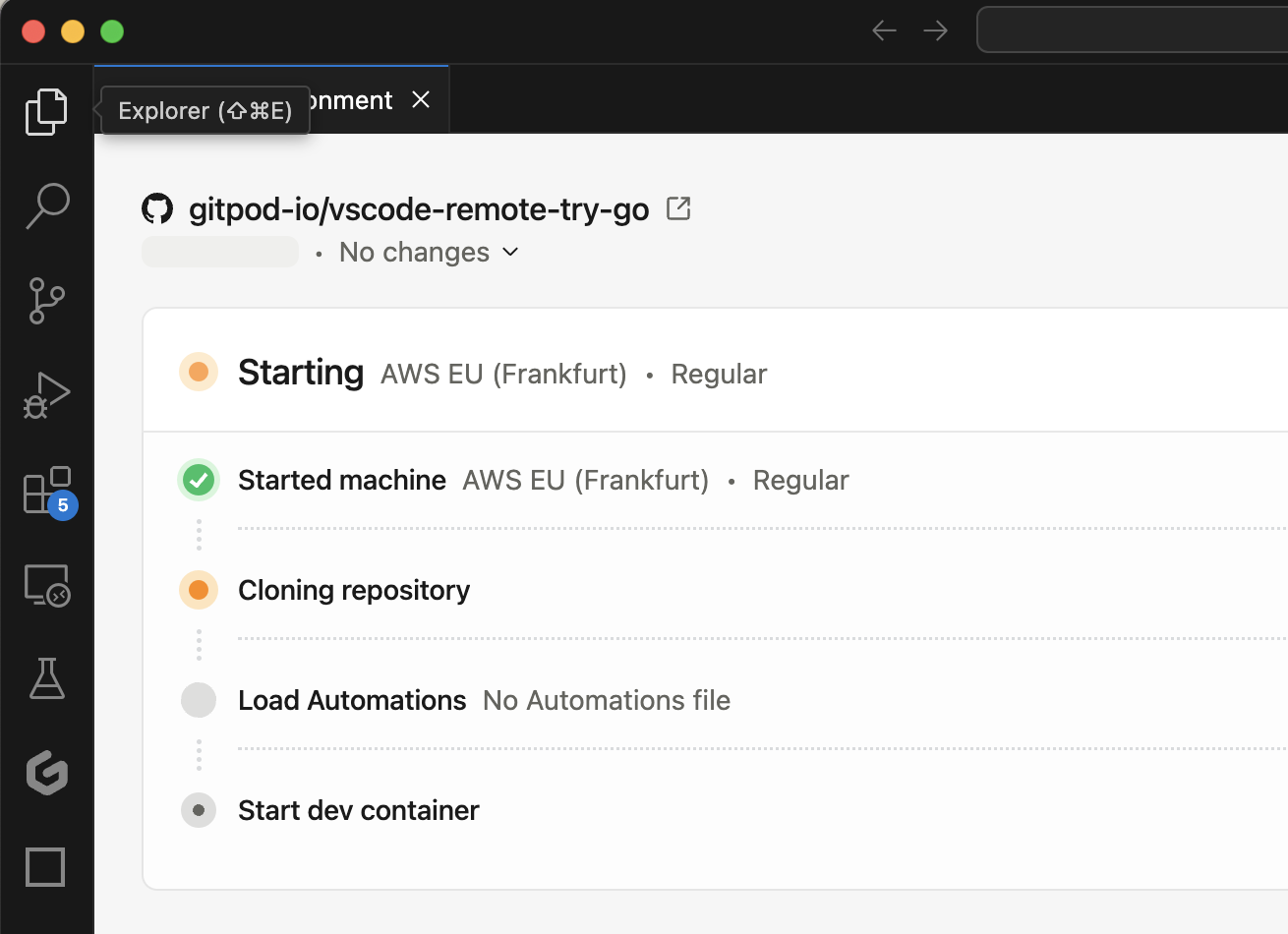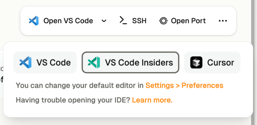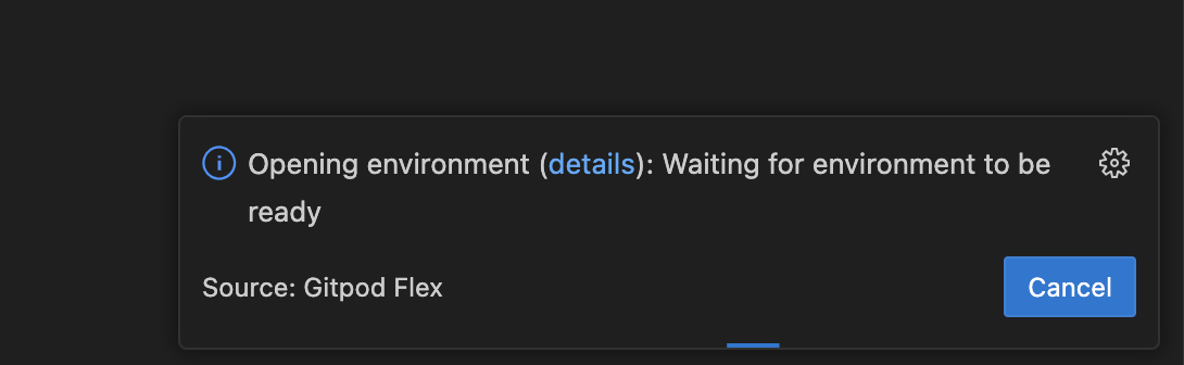While the environment is starting, you can click the Open in VS Code button on the action bar. This button is available at any stage—even when the environment is not fully running yet.
