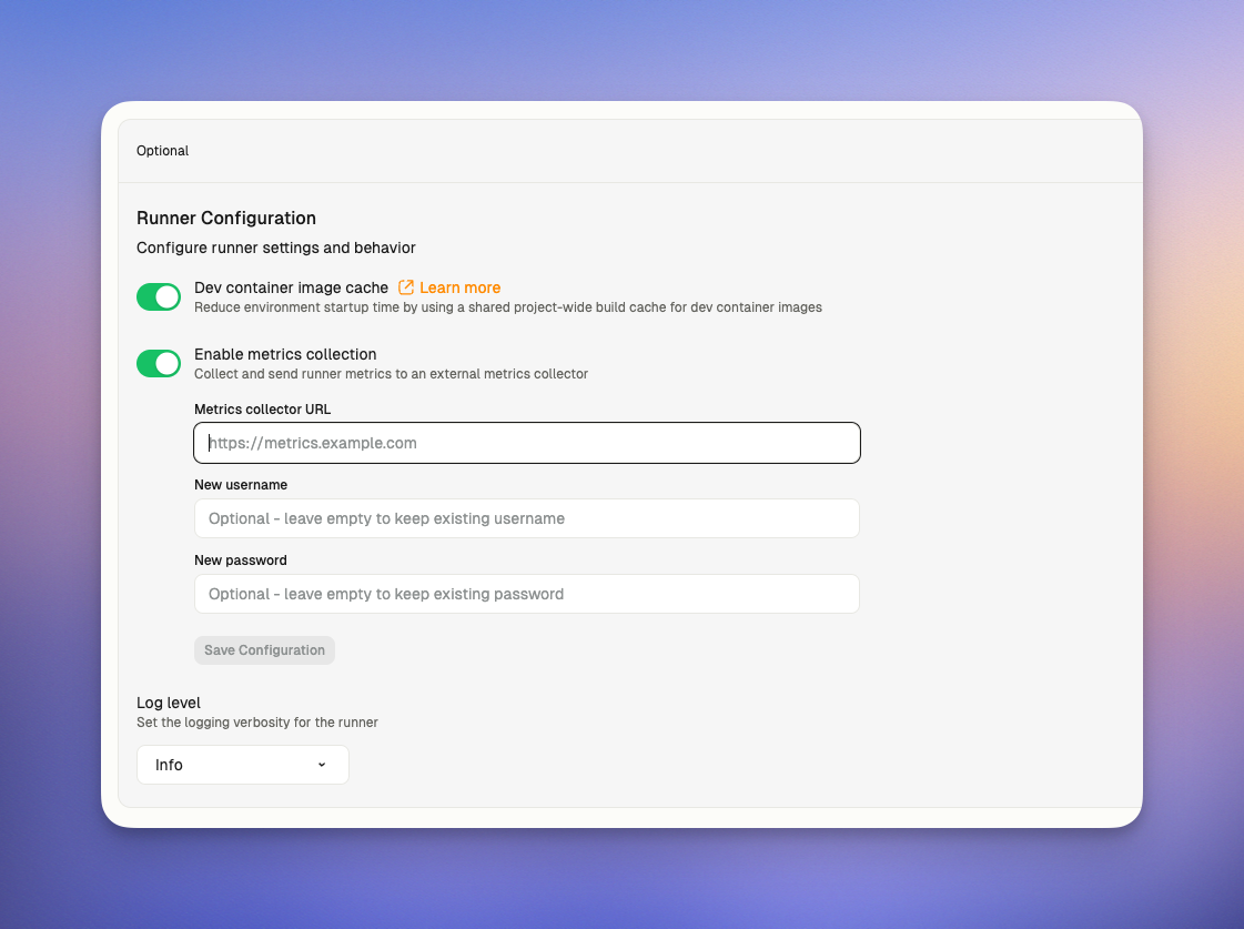 - Shared caching: The cache is shared across all users within a project. The first team member who creates an environment with a new devcontainer configuration builds and caches the image. All subsequent environments created by any team member in the same project with identical configuration use the shared cached version. When rebuilding an existing environment’s dev container, it will also try to pull from the cache but won’t push new images (only the initial dev container build when an environment gets created can push to the cache).