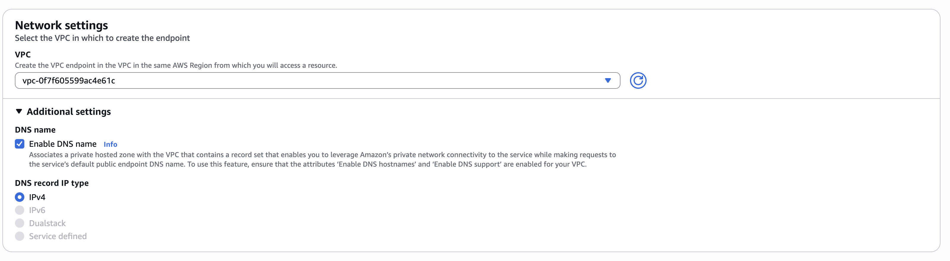 to resolve to the endpoint) - Subnets: Choose private subnets in available AZs (can be the same subnets as your EC2 runner instances)