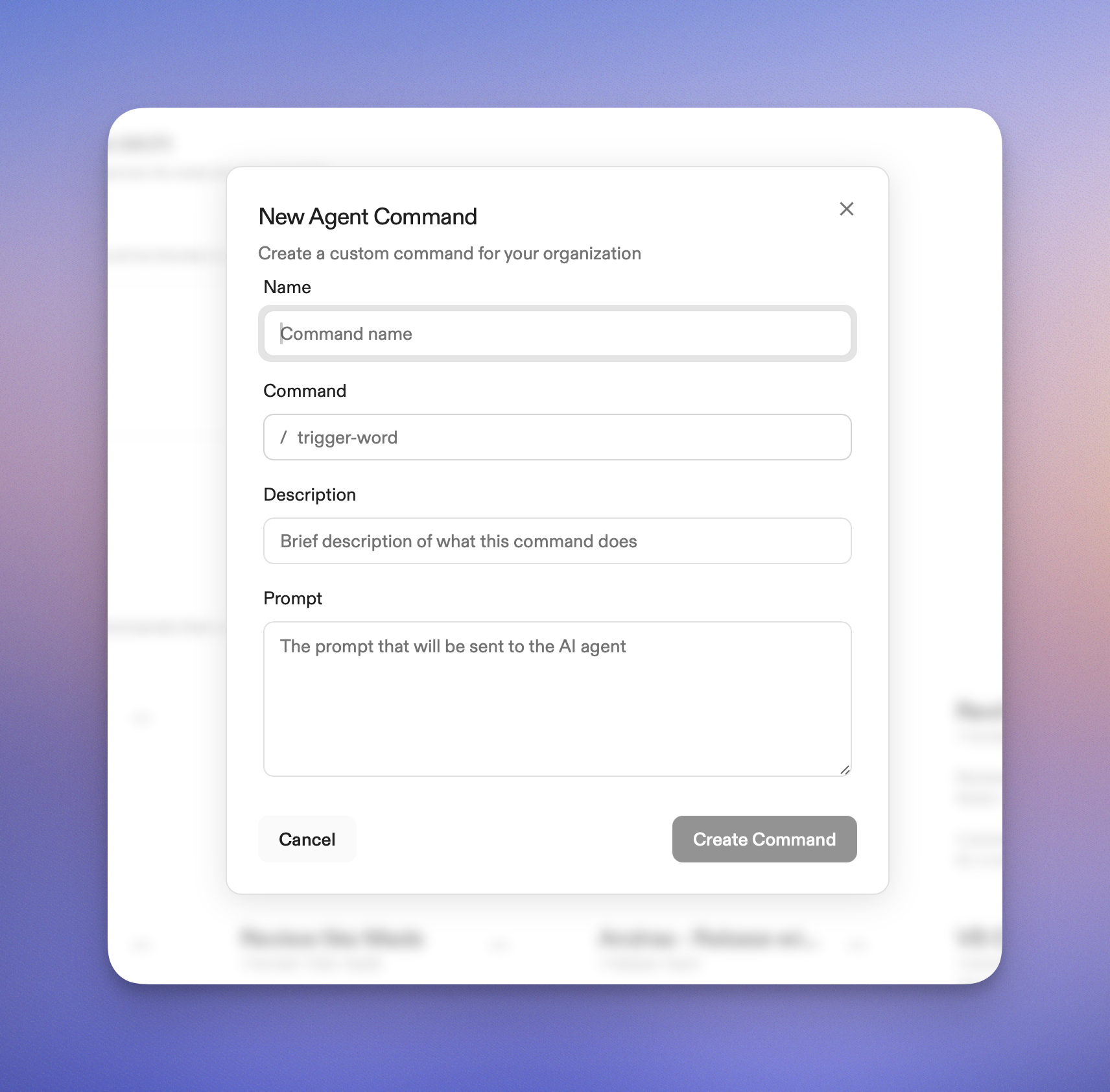 Organization administrators can create custom slash commands that execute predefined prompts. These commands help standardize common development tasks and provide quick access to frequently used prompts.Creating custom commands